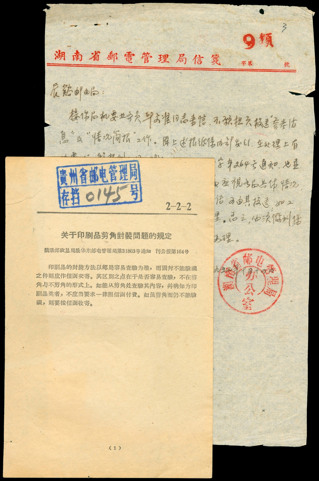 1950's Two documents from Hunan and Guizhou post administration bureau.