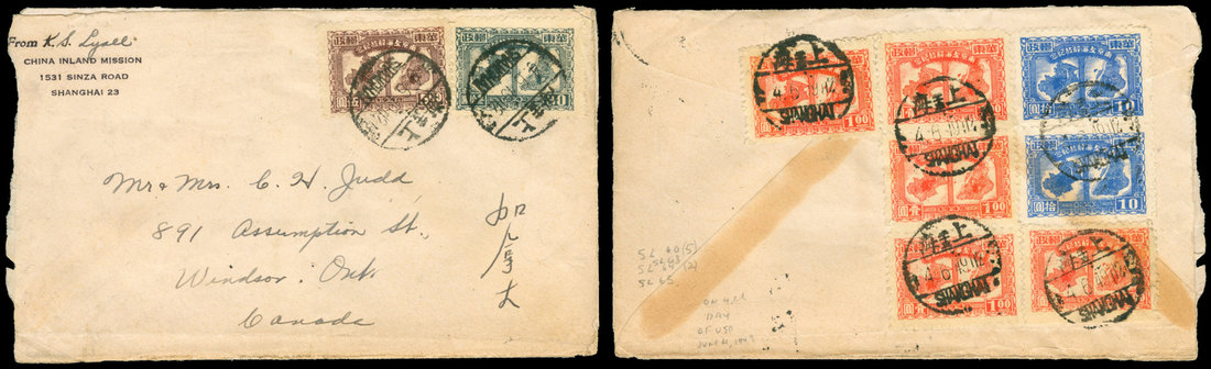 1949(6,4) Shanghai to Canada, with Map issues $1(5),$5,$10(2),$30,
