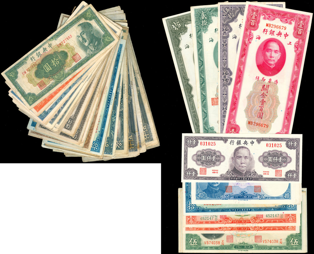 Central Bank of China, a large group of 70 banknotes from the Republican era, containing many different types,