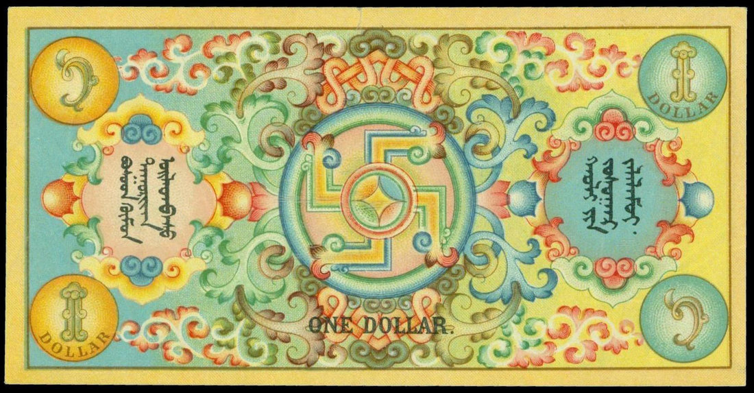 Mongolia, State Treasury Notes, 1 dollar, 1924, serial number 0540065, blue and multicolour, Mongolian text,