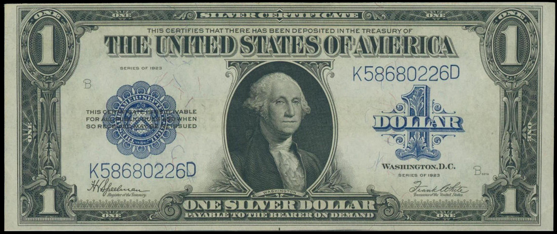 United States, $1 silver certificate, 1923, serial number K58680226D, George Washington at centre,