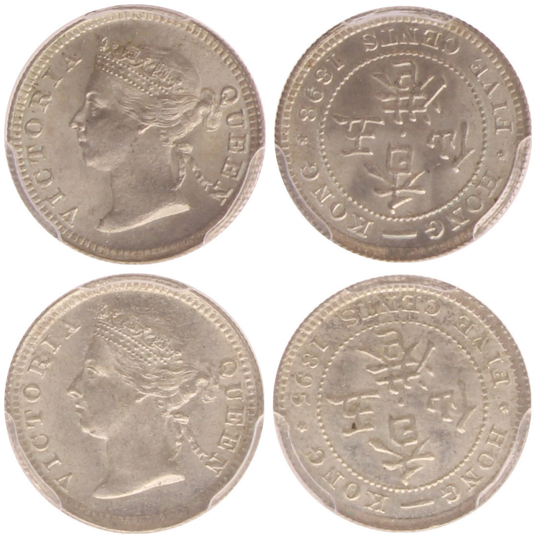 Hong Kong, a pair of silver 5 cents, 1895 and 1898, bust of Victoria on obverse,