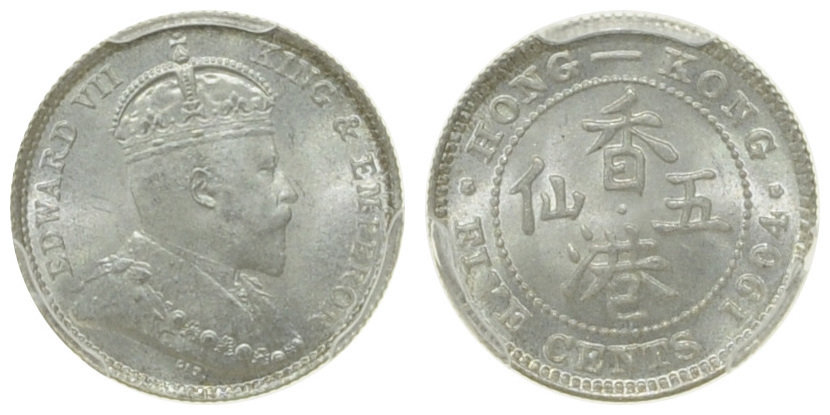 Hong Kong, 5 cents, 1904, bust of George V on obverse,