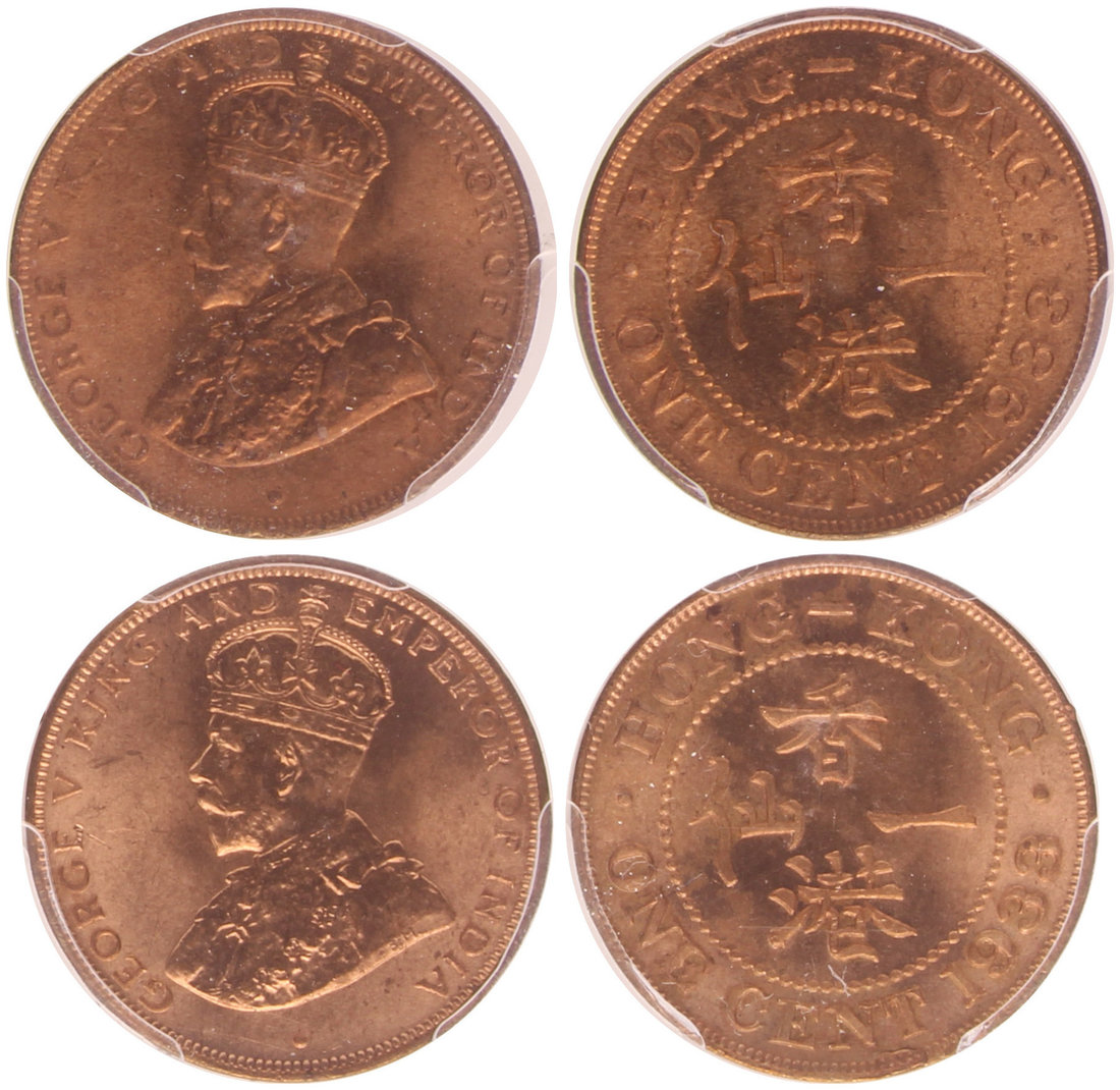Hong Kong, a lot of 2 coins, a pair of 1 cent, both 1933, George V on obverse,