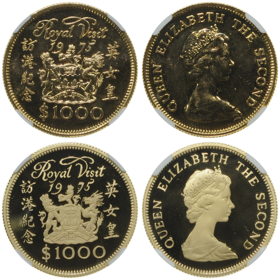 Hong Kong, lot of 2 gold $1000, 1975, issued for the Queen's Royal Visit to Hong Kong, one proof and one uncirculated,