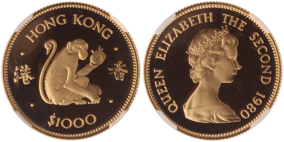 Hong Kong, gold $1000, 1980, Year of the Monkey,