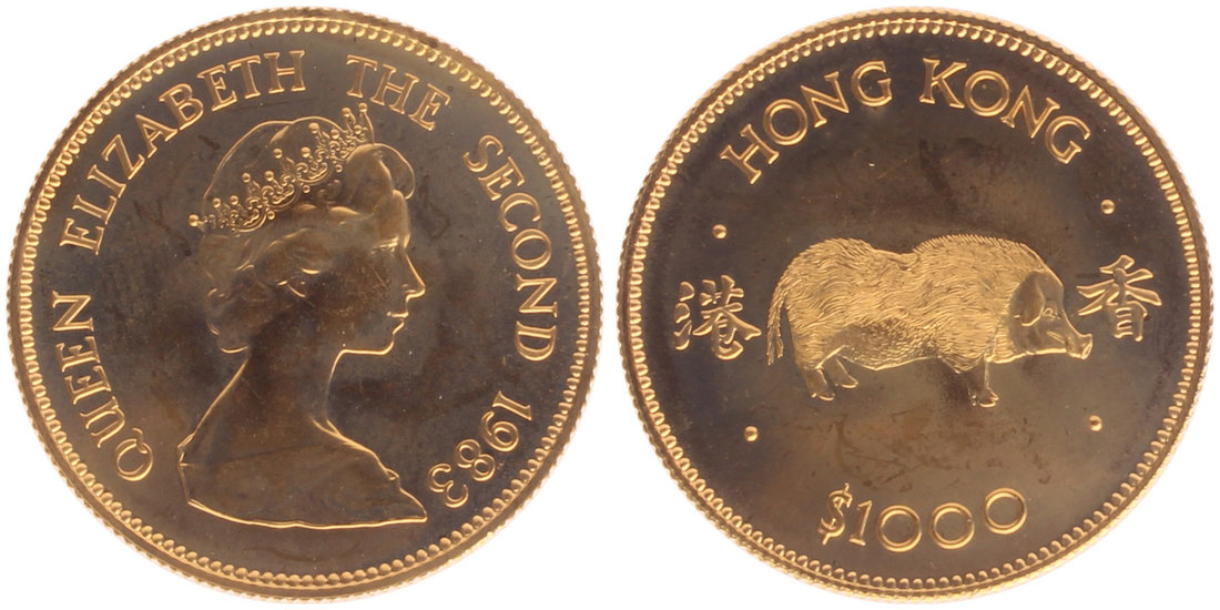 Hong Kong, gold $1000, 1983, Year of Pig,