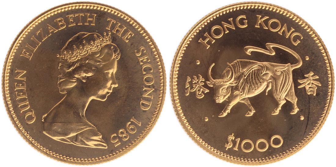 Hong Kong, gold $1000, 1985, Year of Ox,