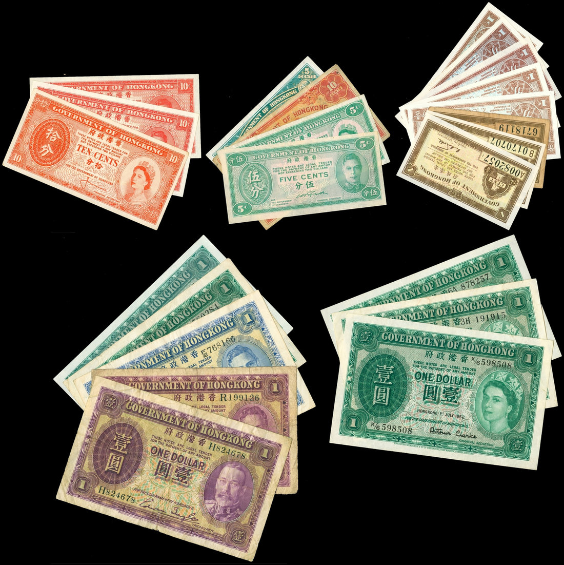 Hong Kong Government, set of 23 notes, 1 cents (8), 5 cents (3), 10 cents (4) and $1 (8), including 1935 $1 with King George V,