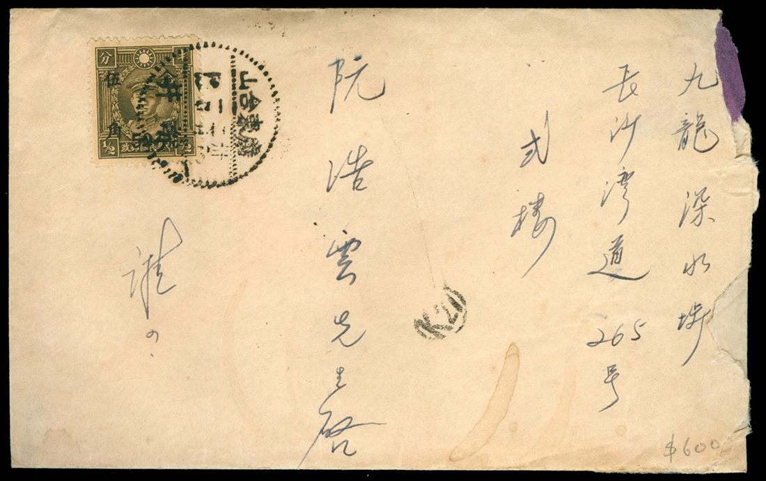 1949 (2 Feb.) 50c. on ½c. single franking cover from Toishan to Hong Kong.