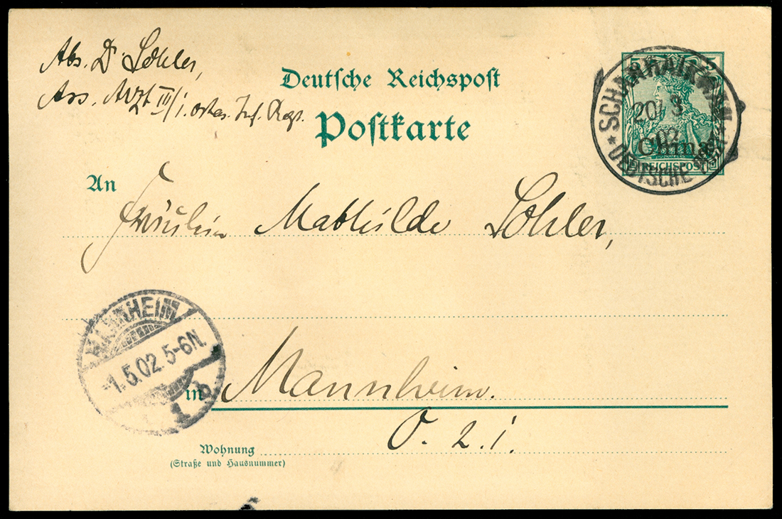 1902(20 Mar.) German Office PSC 5p Shanhaikwan to Germany. Real photo pasted on the back side.
