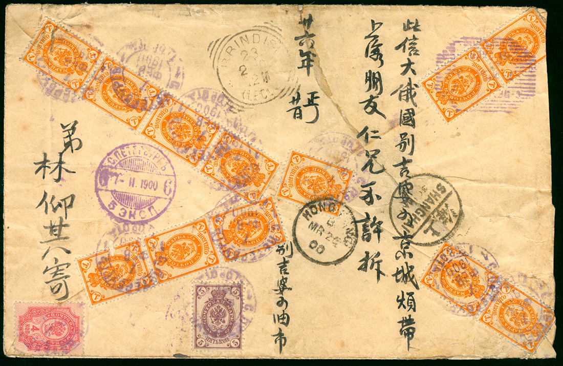 1900(7 Feb.) Russia income regis. Chinese mail cover to Shanghai. Hong Kong transit(25.3),