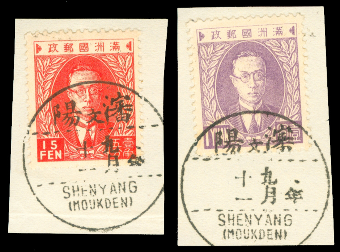 1932 First Regular Issue, 1/2F. To 1Y, full set of 18, tied on piece by complete strike of Shenyang bilingual (11 Sep.) c.d.s.