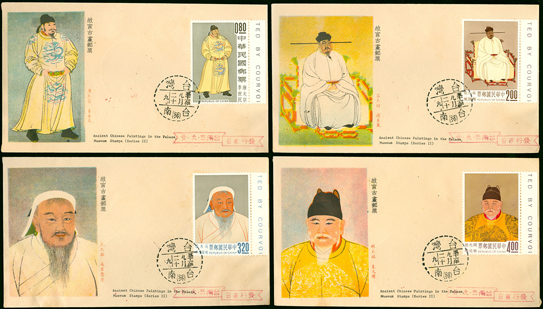 1962 Four Ancient Chinese Emperors, set of four first day covers; stamps on cover are all with right imprint margin, fine.