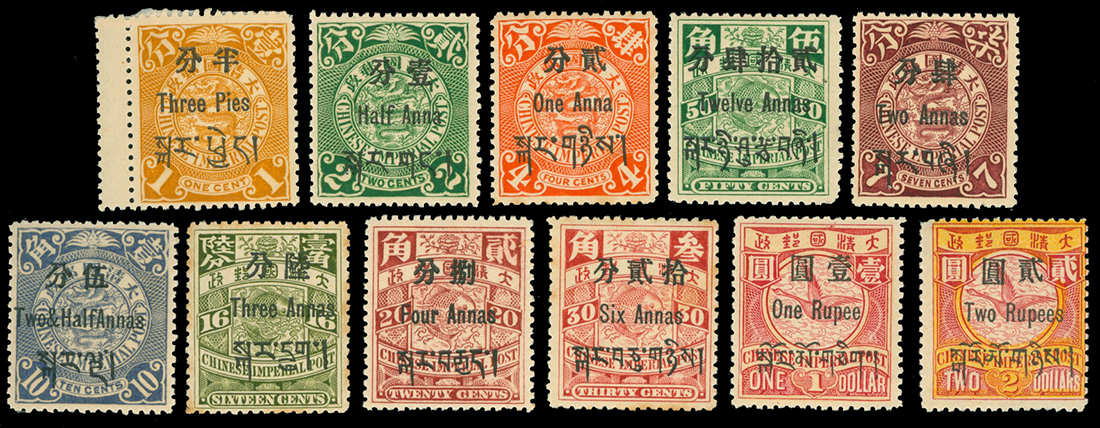 1911 3p. on 1c. to 2r. on $2. Set of eleven, $1 and $2 unmounted mint, very fresh. Others minted, 6c. and 20c. toned. Chan T1-11.