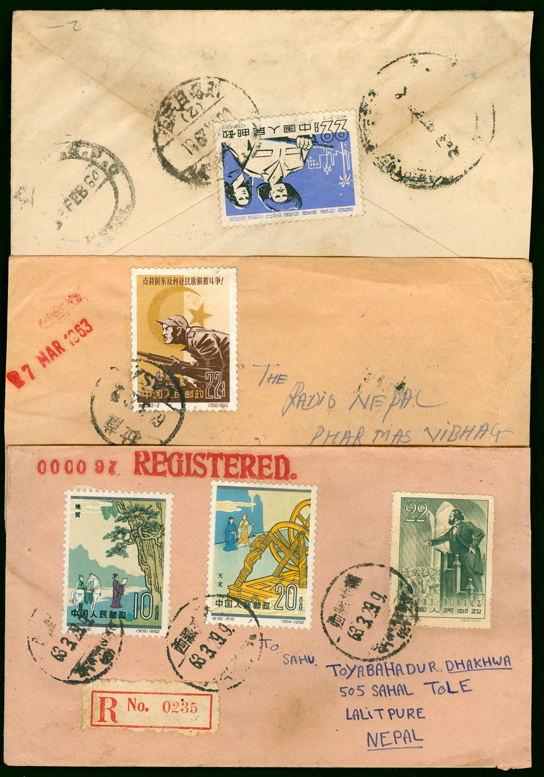 1960 Group of three commemorative franking covers Tibet to Nepal, include one regis. usage.