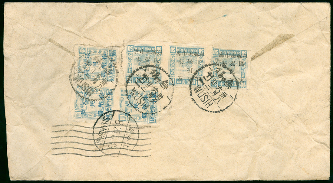 1949 (23 Jun.) Wushi to Shanghai cover, franked with East China Train and Plane overprints issues.