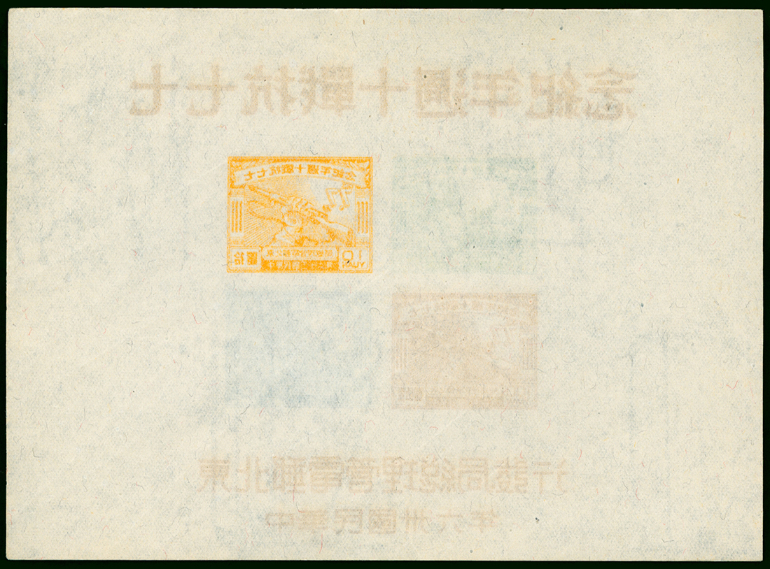 People's Posts: 1947 10th Anniversary of outbreak of war with Japan, miniature sheet. Yellow colour offset variety, unused, very fine. Yang NE 68M.