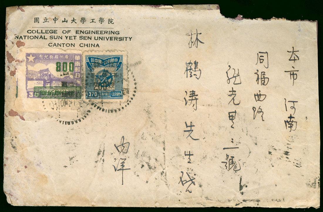 1950 (24 Apr.) Canton to local envelope, bearing $1,170. franking, tied by Shekpai Canton c.d.s., A Canton promotion machine chop on the reverse.