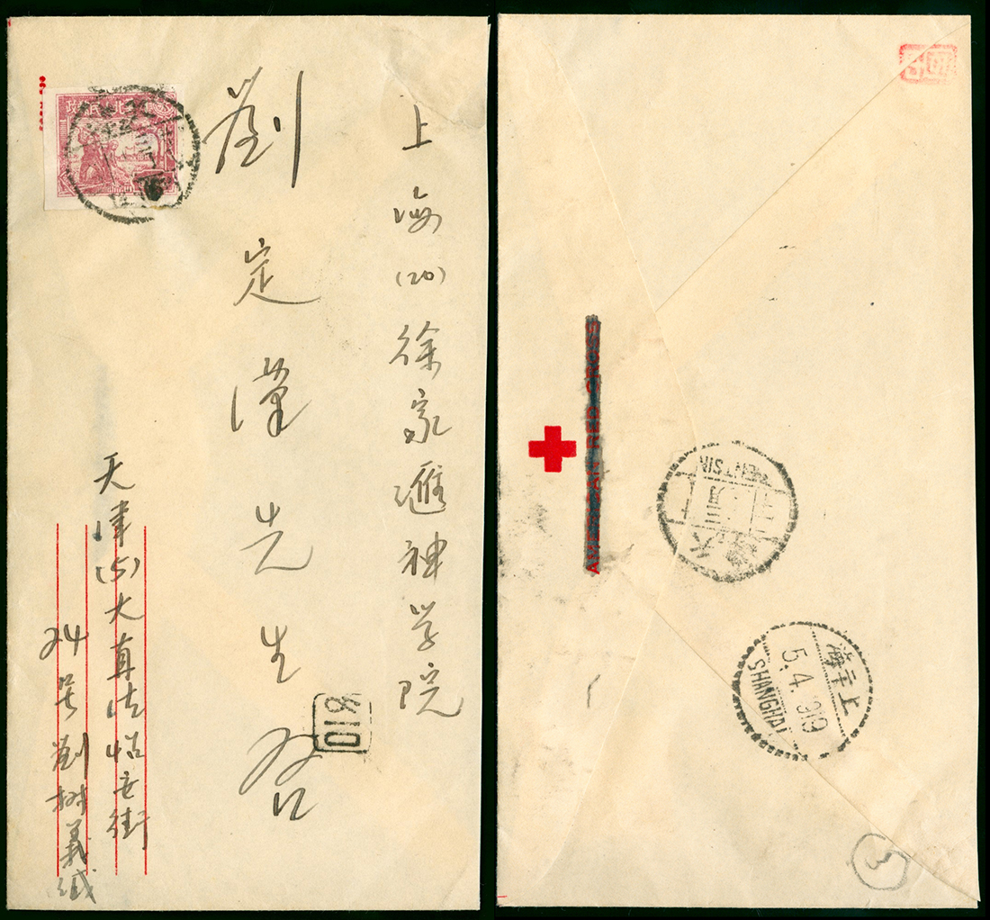 1949 (17 Mar.) Tientsin to Shanghai, North China 70c. single franking.