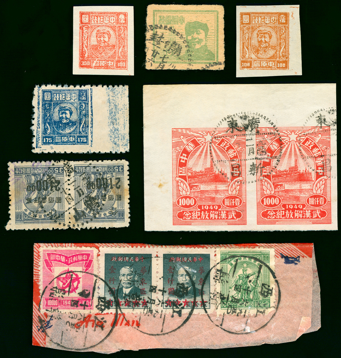 1948-49 mint and used collection in old time album including pages of Central and South China, Zhongyuan Postal Administration Mao Tse-tung $5 to $300 unused, plus few pieces with Hunan postmarks, and many postmarks, interesting (370)