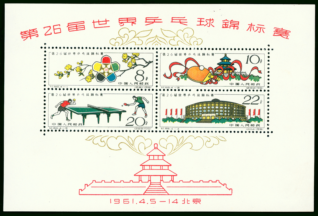 1961 C86M Table tennis miniature sheet, unused, SGMS 1971a.