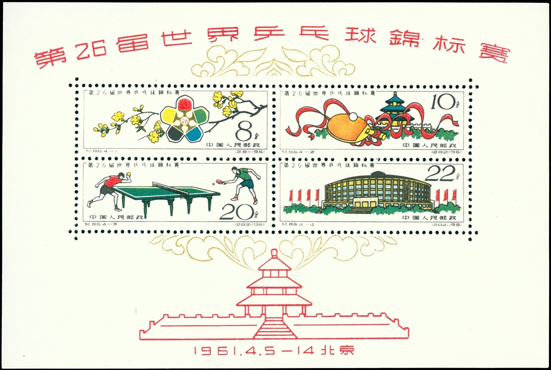 1961 Table Tennis Championships (C86) miniature sheet, unused without gum as issued; fine. Yang C86MS
