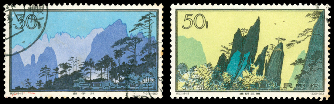 1963 The Landscapes of Huangshan (S57), 4f .to 10f., complete set of sixteen, fresh color. used.