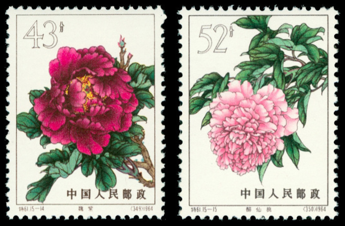1964 Peonies (S61) complete set of 15, mint, unfolded, flesh colour, very fine.