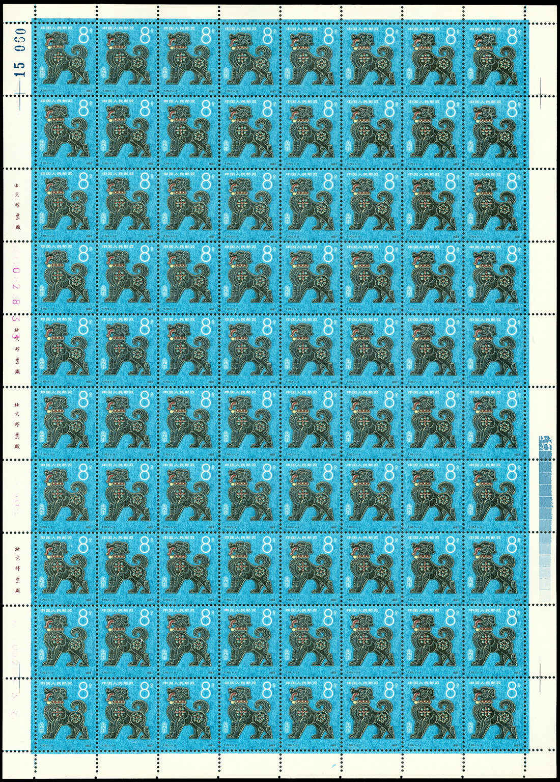 1982 Year of the Dog (T70) complate sheet of 80, unmounted mint