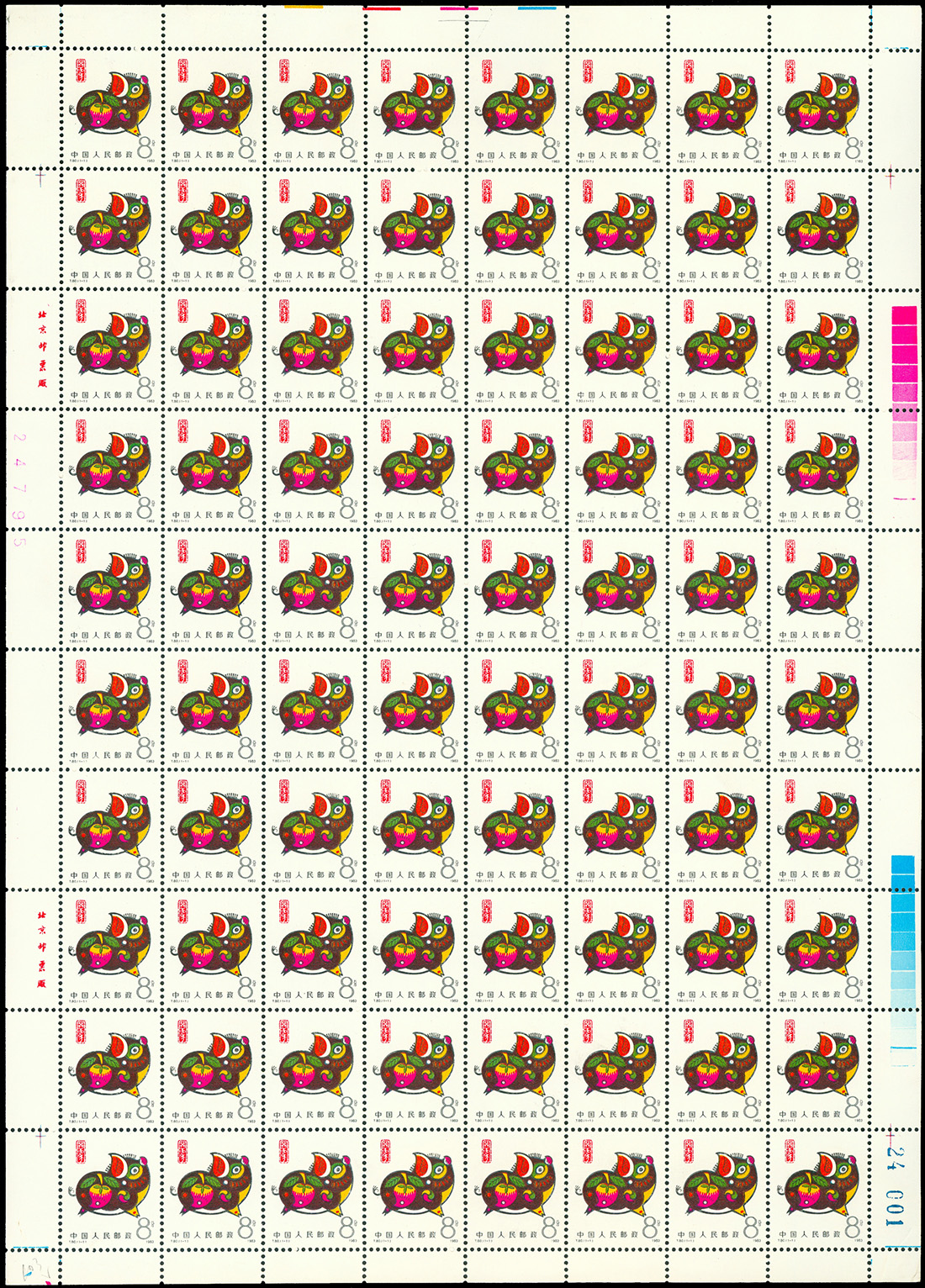 1983 Year of the Pig (T80) complate sheet of 80, unmounted mint.