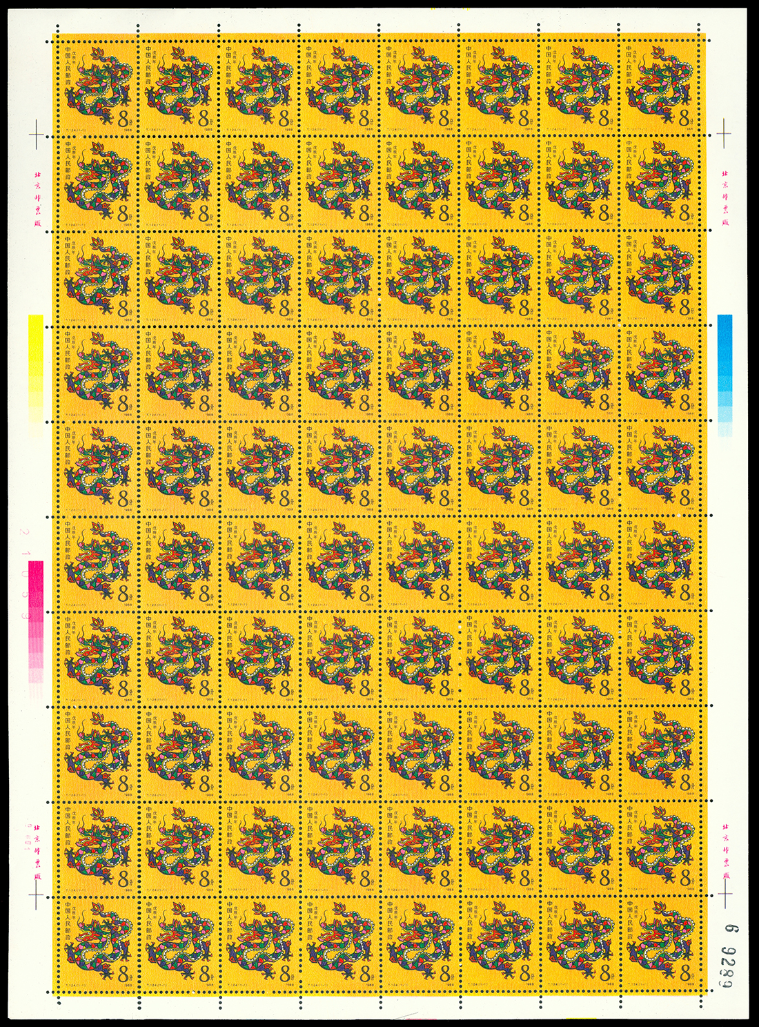 1988 T124 year of the Dragon, complete sheet of eighty (10), very fresh