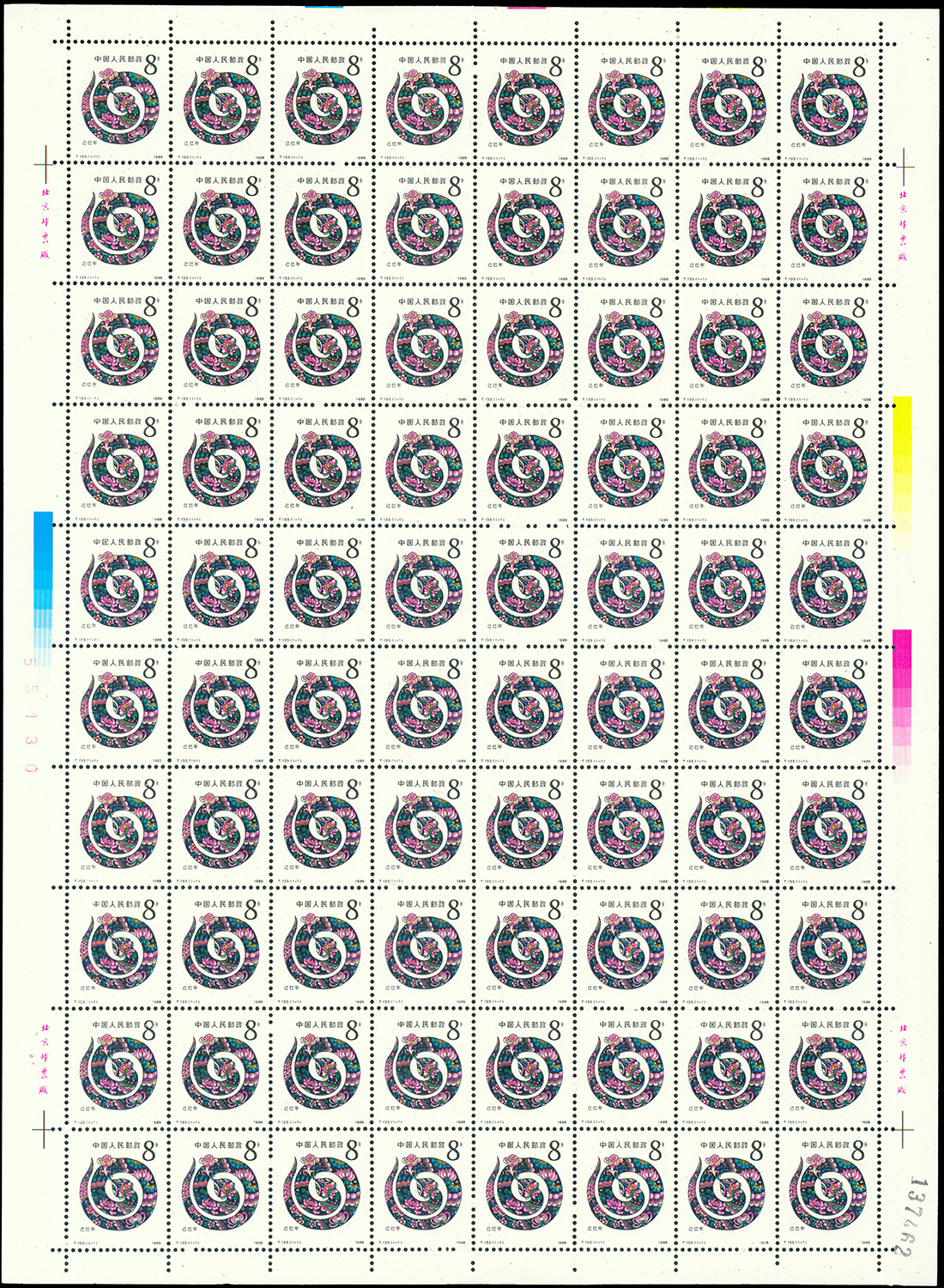 1989 Year of the Snake (T133) complate sheet of 80, unmounted mint.