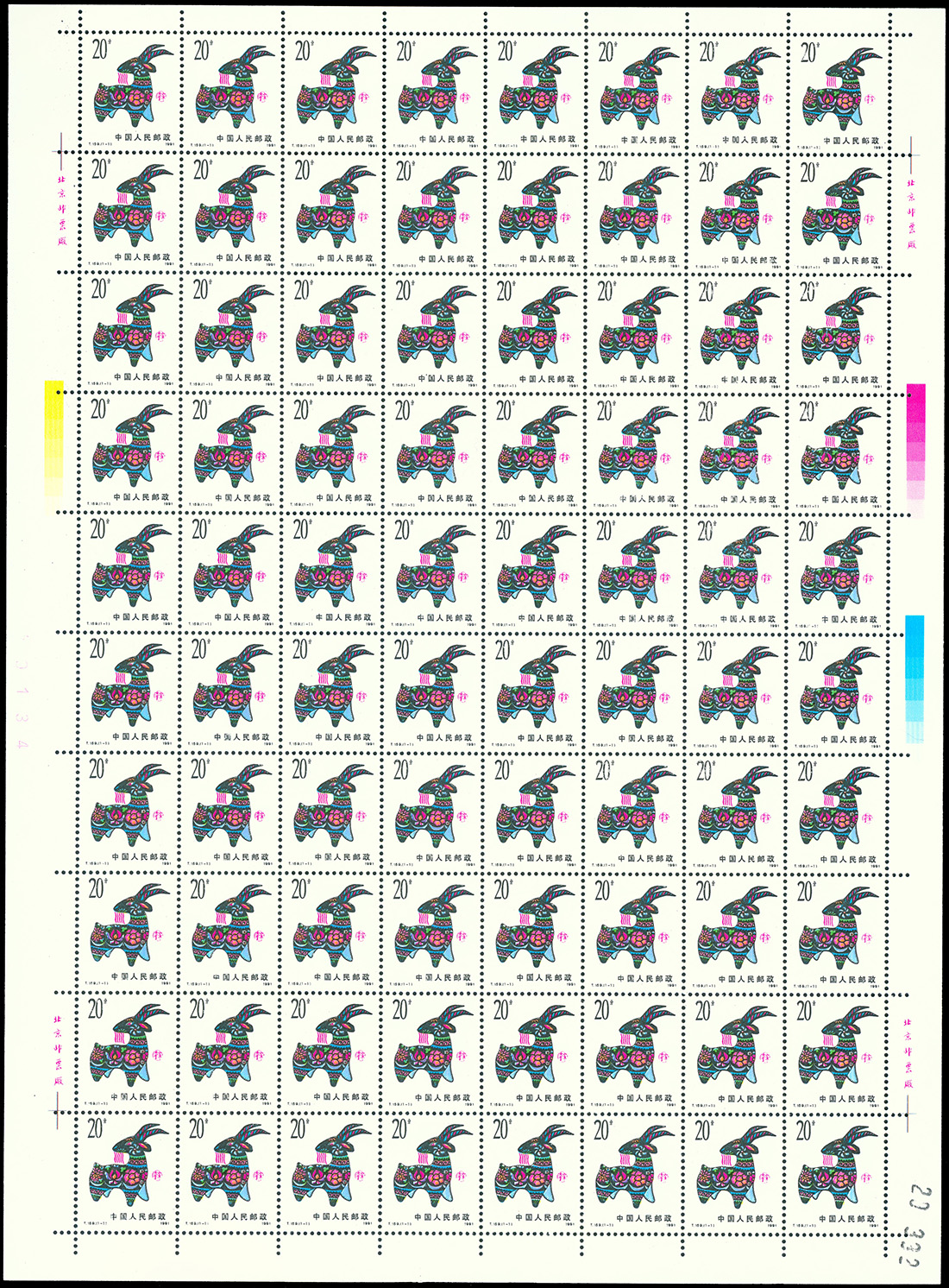 1991 Year of the Sheep (T159) complate sheet of 80, unmounted mint