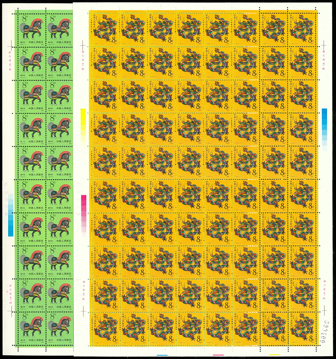 1985-1991, T201 Year of Ox, T107 Year of Tiger, T112 Year of Rabbit, T124 Year of Dragon, T133 Year of Snake, T146 Year of Horse, T159 Year of Sheep, total seven sheets, very fresh.