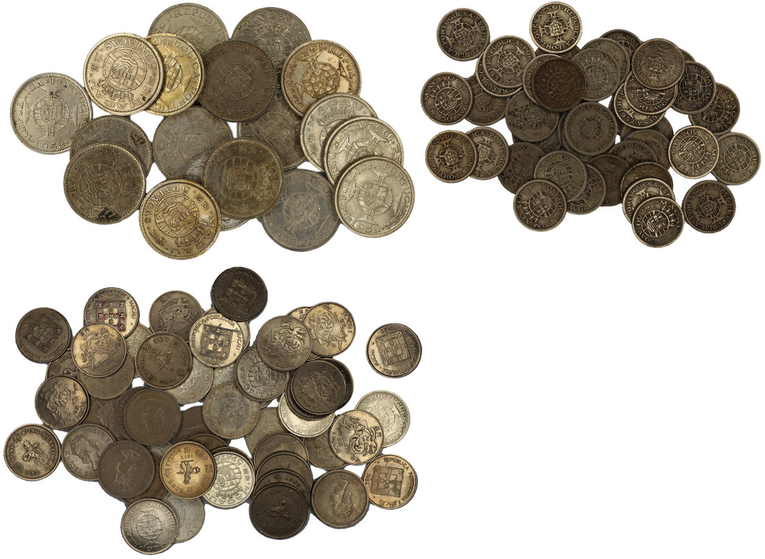 Macau and Hong Kong, large group of coins from circulation consisting of: Macau: 50 avos, 1952 (40 pieces), 1 patacas, 1952 (18), 1 patacas, 1971 (13 pieces), 5 patacas, 1982 (13 pieces), 5 patacas, 1983 (7 pieces), Hong Kong, $1, 1960 (6), 1970 (2), 1972 (3), 1974 (2) and 1975 (1)