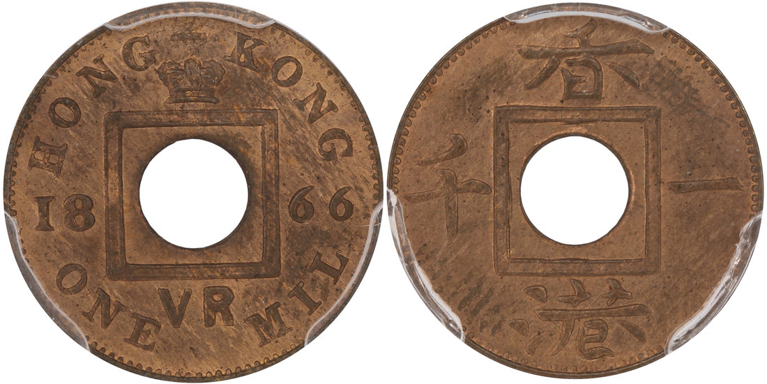 Hong Kong, bronze 1 mil, 1866,