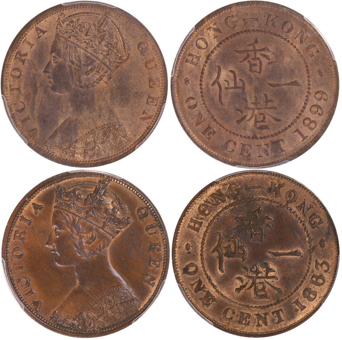 Hong Kong, lot of 2x bronze 1 cent, 1863 and 1899, Queen Victoria on obverse,