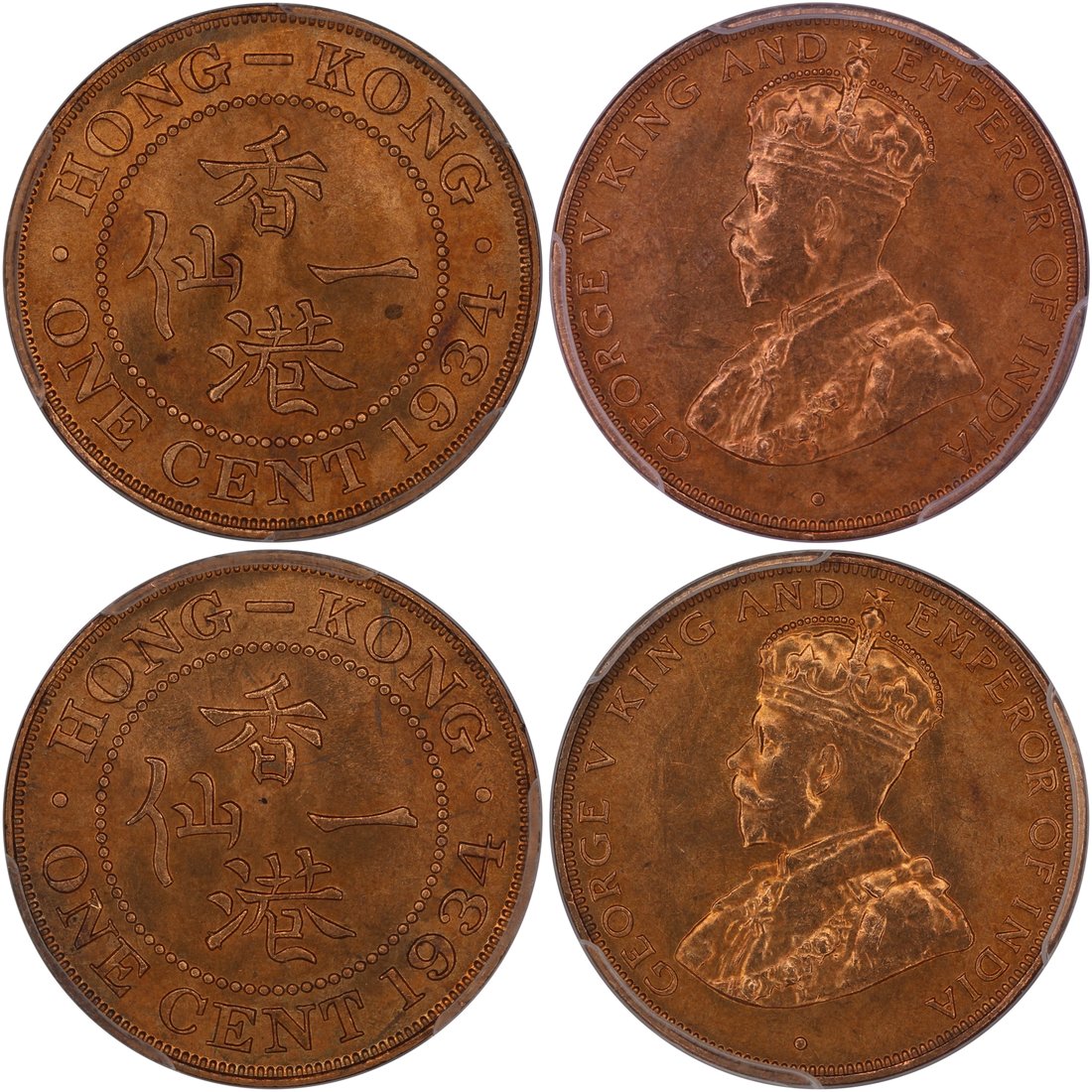 Hong Kong, a pair of bronze 1 cent, 1934,
