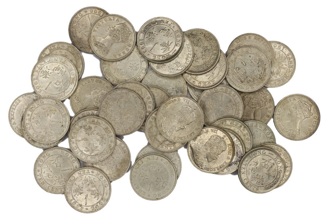 Hong Kong, a large group of 40x silver 10 cents, Queen Victoria or King Edward VII on the obverse,
