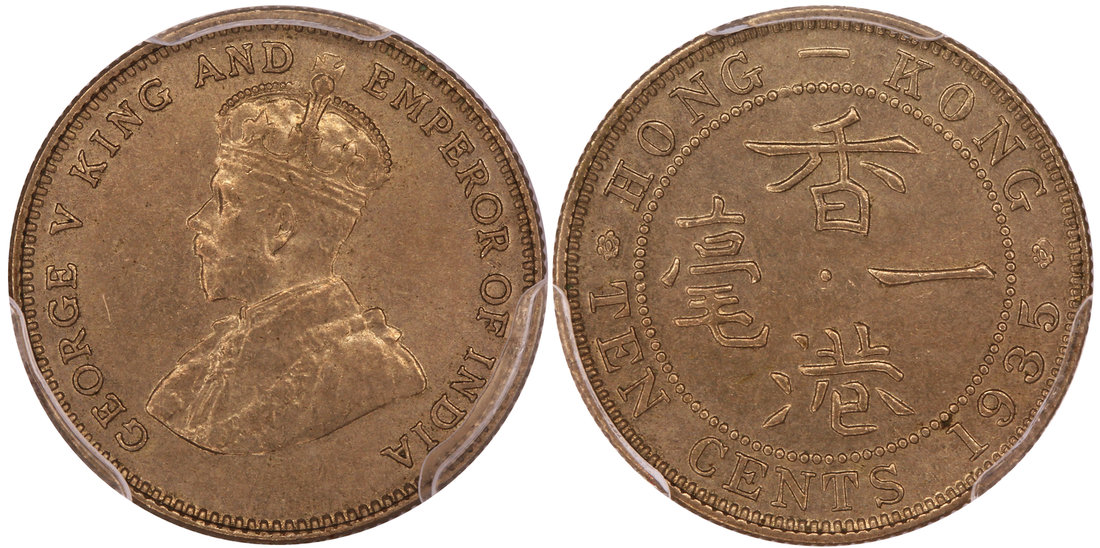 Hong Kong, a copper nickel 10 cents, 1935, George V on obverse,