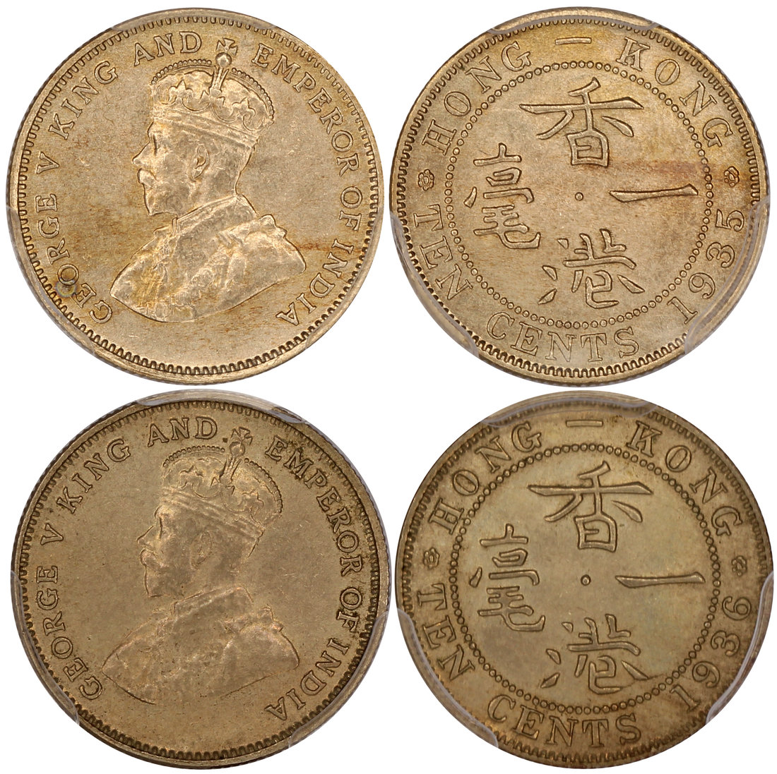 Hong Kong, a pair of copper nickel 10 cents, 1935 and 1936, George V on obverse,