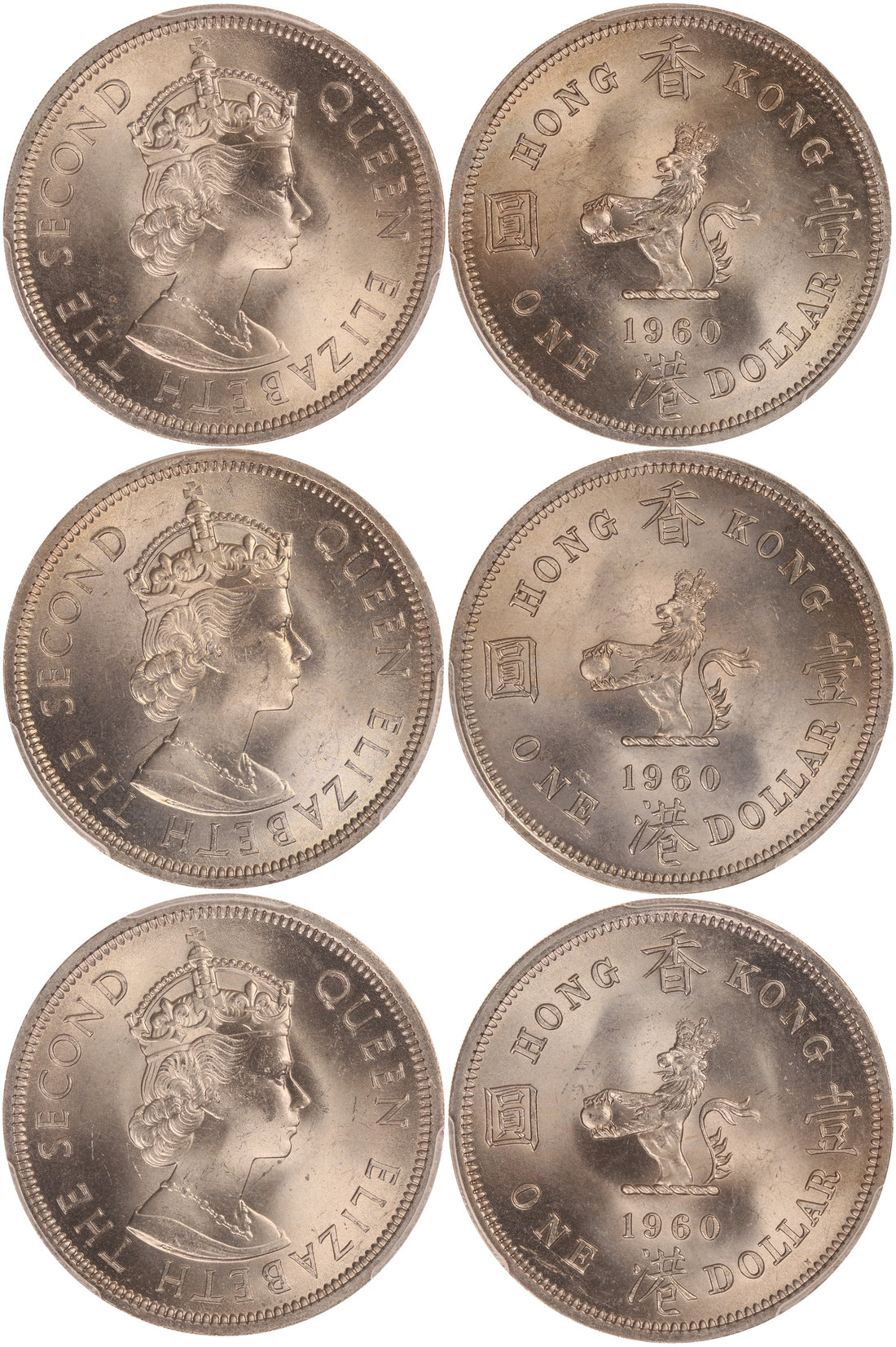 Hong Kong, lot of 3 cupro nickel $1, 1960-H, Queen Elizabeth II on obverse,