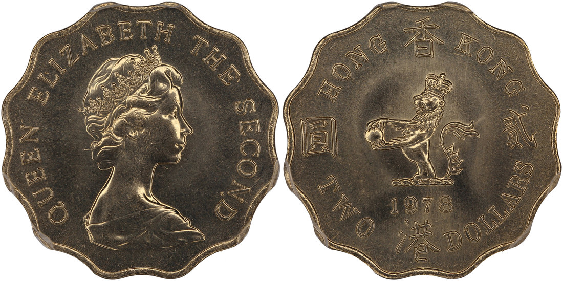 Hong Kong, copper nickel $2, 1978, key date,
