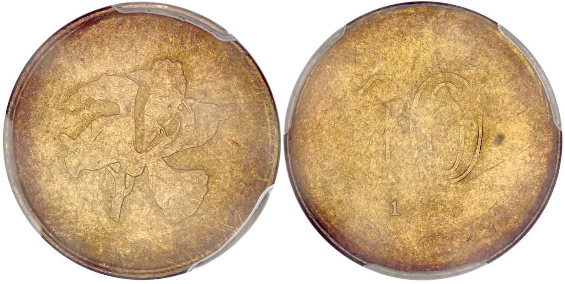 Hong Kong, nickel brass 10 cents, ND, mint error, weakly struck obverse and reverse,
