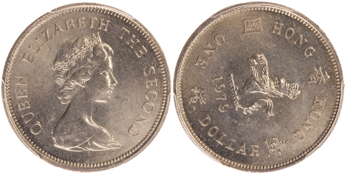 Hong Kong, cupro nickel $1, 1979, ERROR COIN, 80 degree rotated dies,