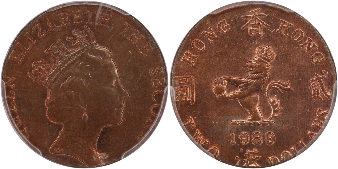 Hong Kong, a 'Mint Error' of $2, 1989, struck on cupronickel planchet, weighs 3.9 grams,