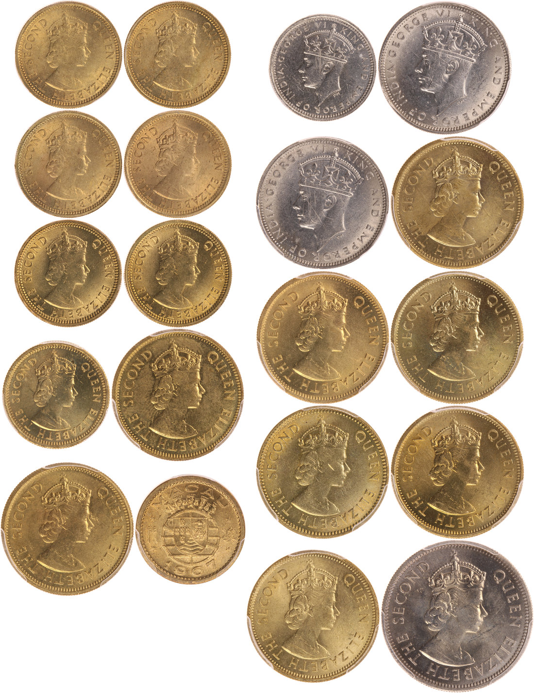 Hong Kong, a group of 20 modern coins, 5 cents (7), 1963 - 1971KN, 10 cents (8), 1964 - 1978, 10 cents 1939-KN (2), 5 cents 1939-KN (1), 50 cents (1), 1973 and Macau 5 avos (1), 1967,