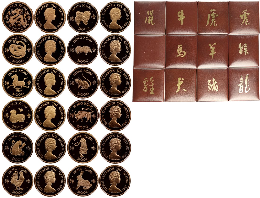 Hong Kong, complete set of 12x $1000, Lunar Horoscope series, 1976 to 1987,