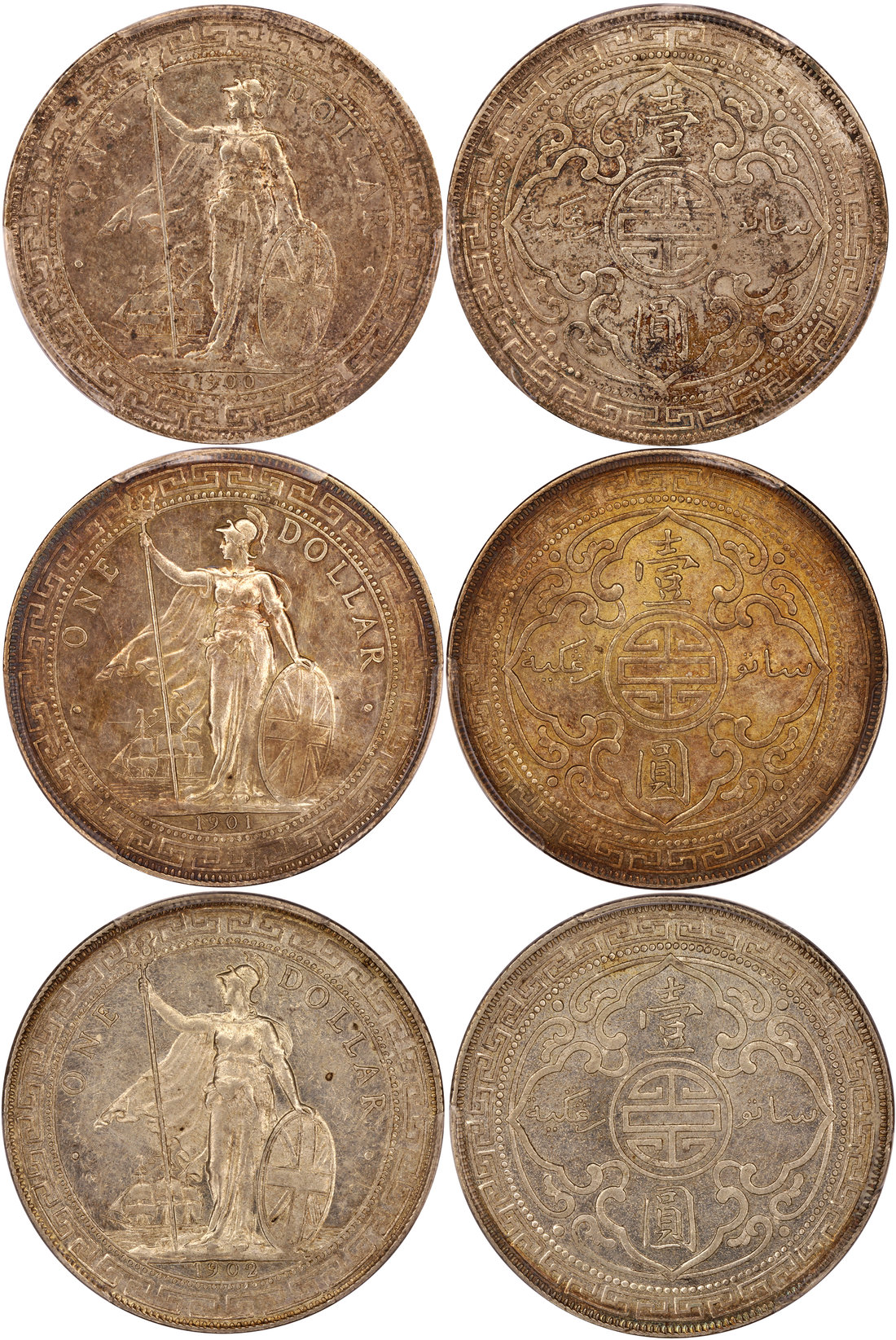 Great Britain, a lot of 3 x silver $1, Trade dollar, 1900B-1902B,